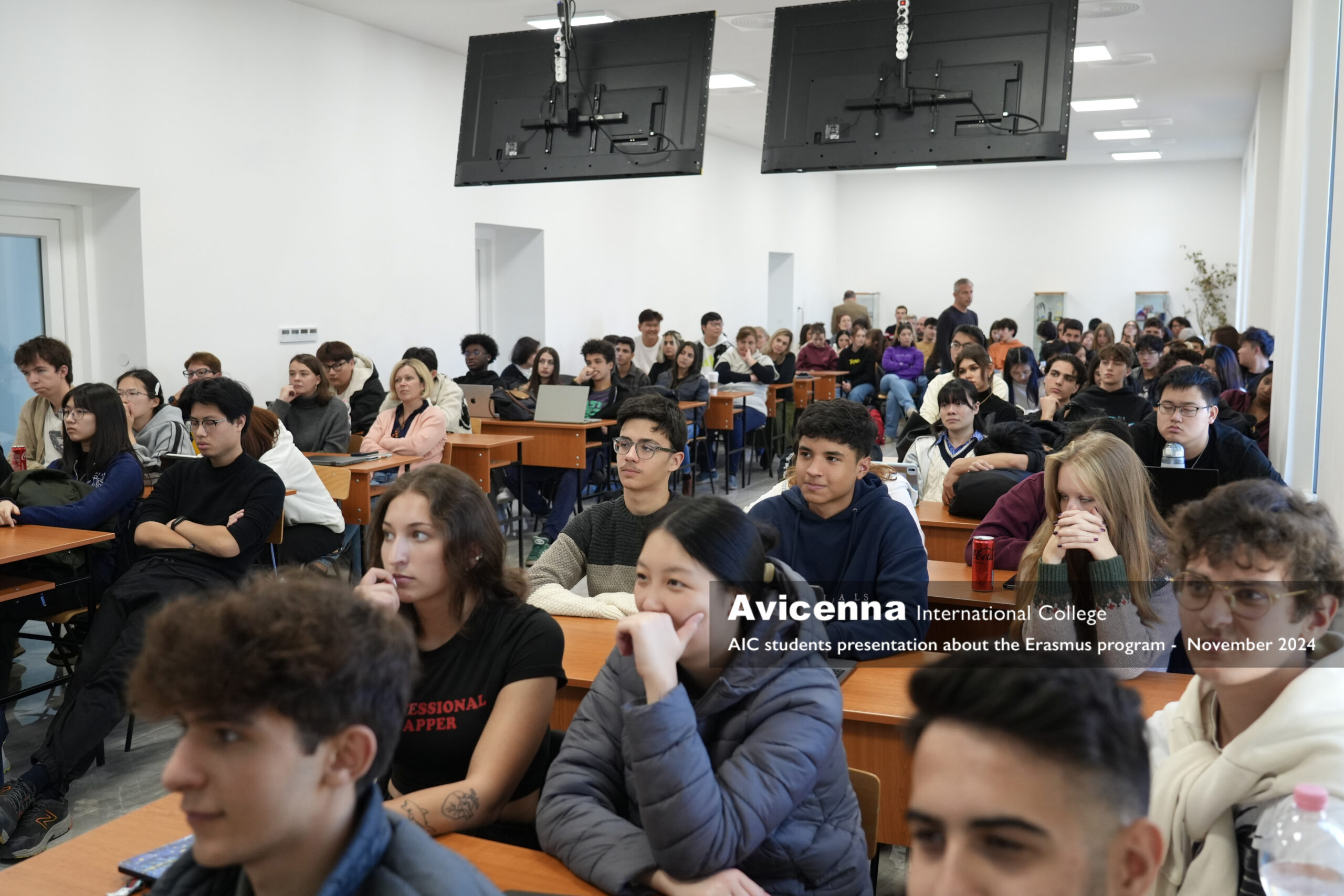 AIC Erasmus Students Presentation after trip to Lecce- Oct 24, 2024 Our Avicenna students have done their presentations ( dissemination of study experience) the week after they completed their Erasmus mobilities in mid-October in Lecce and Milano-.Rho.  The participating students were going public about their event- packed experience in front of an audience composed of all the Avicenna students and a visiting group of students from Assisi.