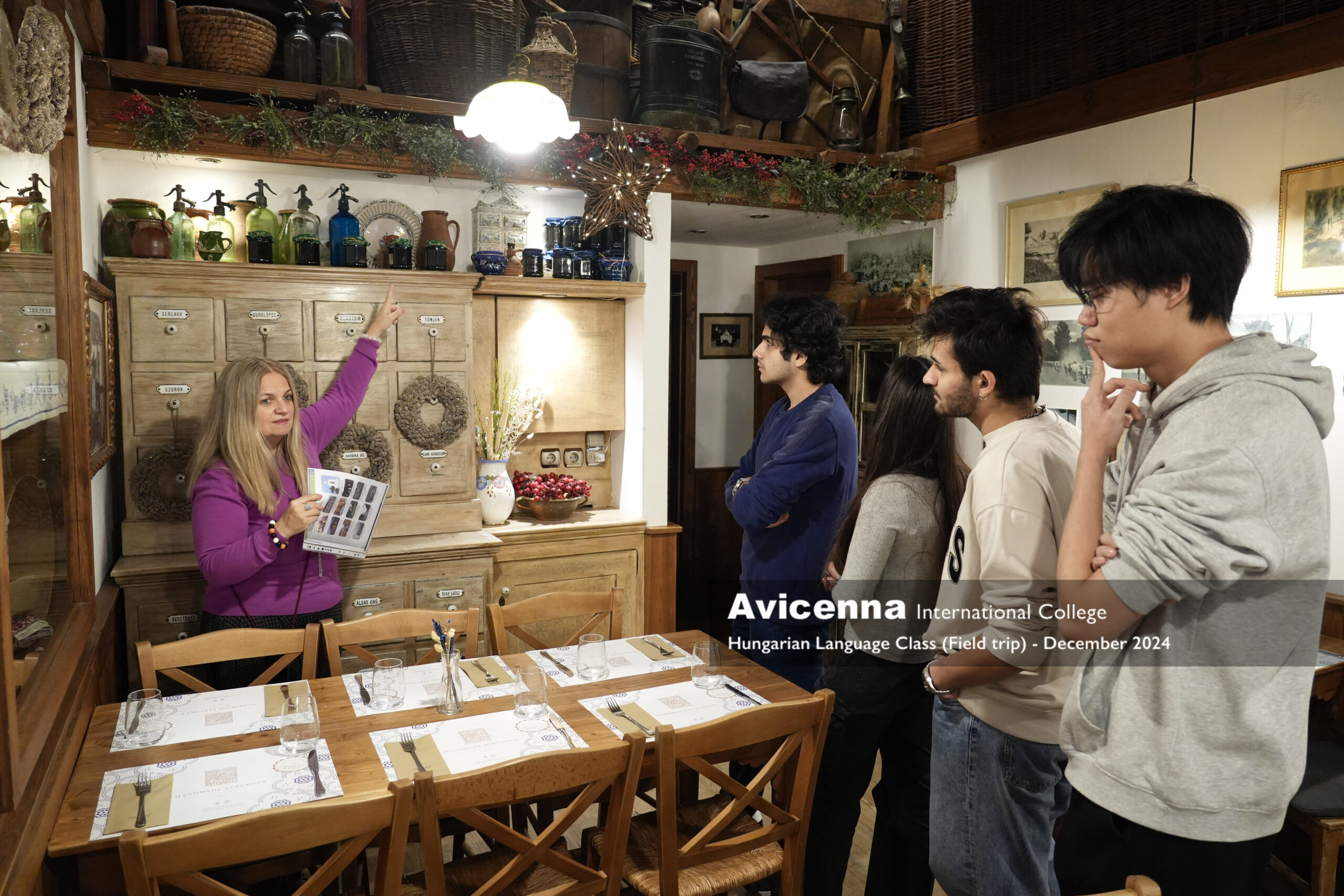 During their Hungarian as a Foreign Language (HFL) class, Grade12 students learnt about Hungarian culinary traditions as well as city and village life in Hungary. As a follow-up of their classroom activity, on December 11th, 2024, Ms. Erika took the group to a field trip to gain a first-hand experience about these topics.
