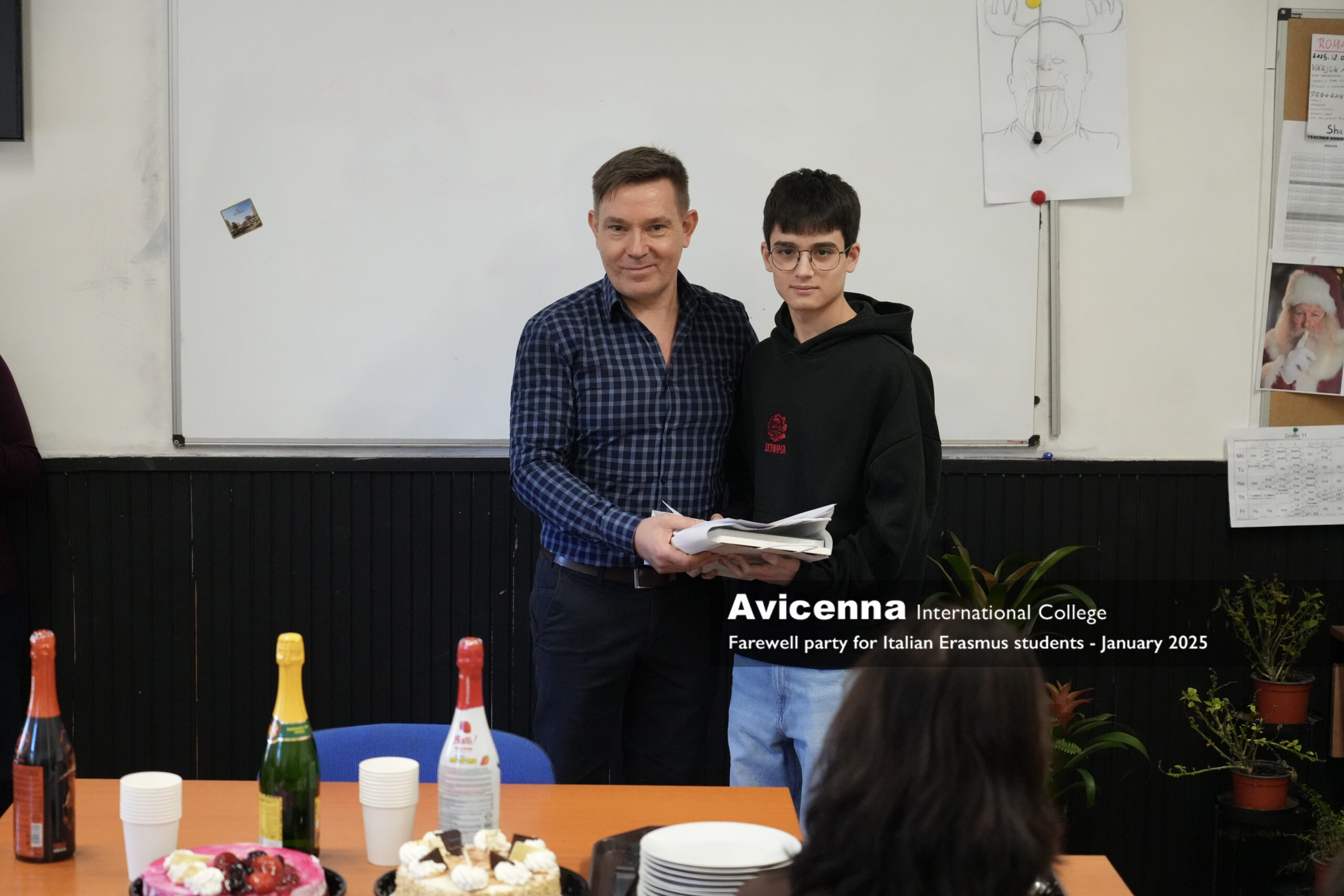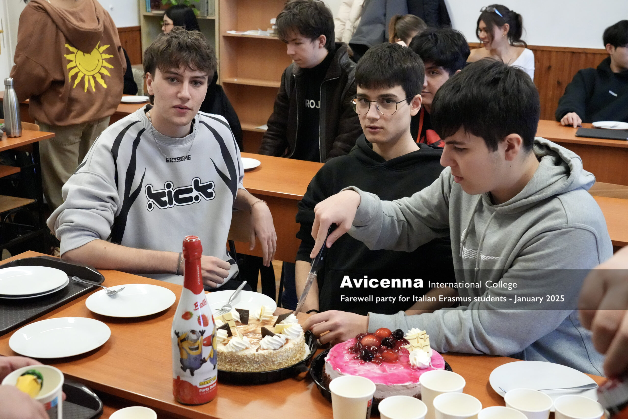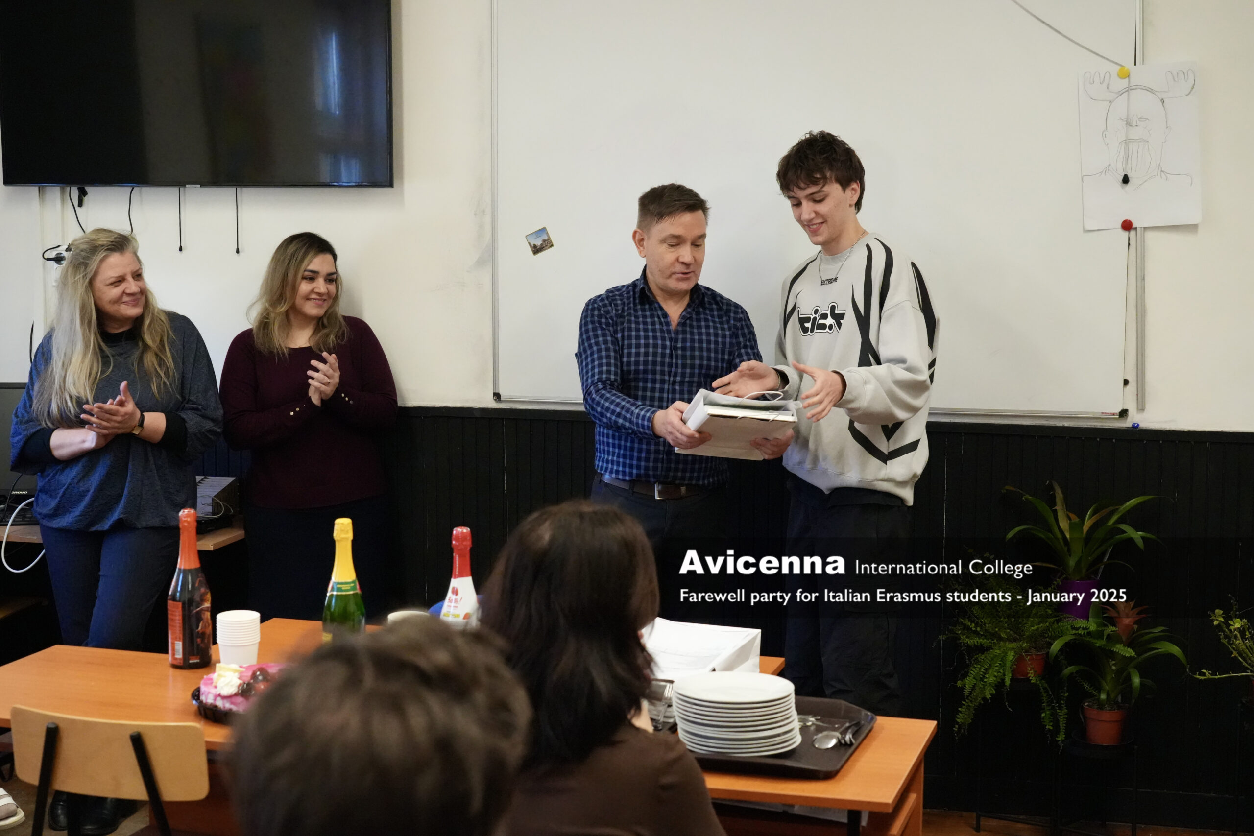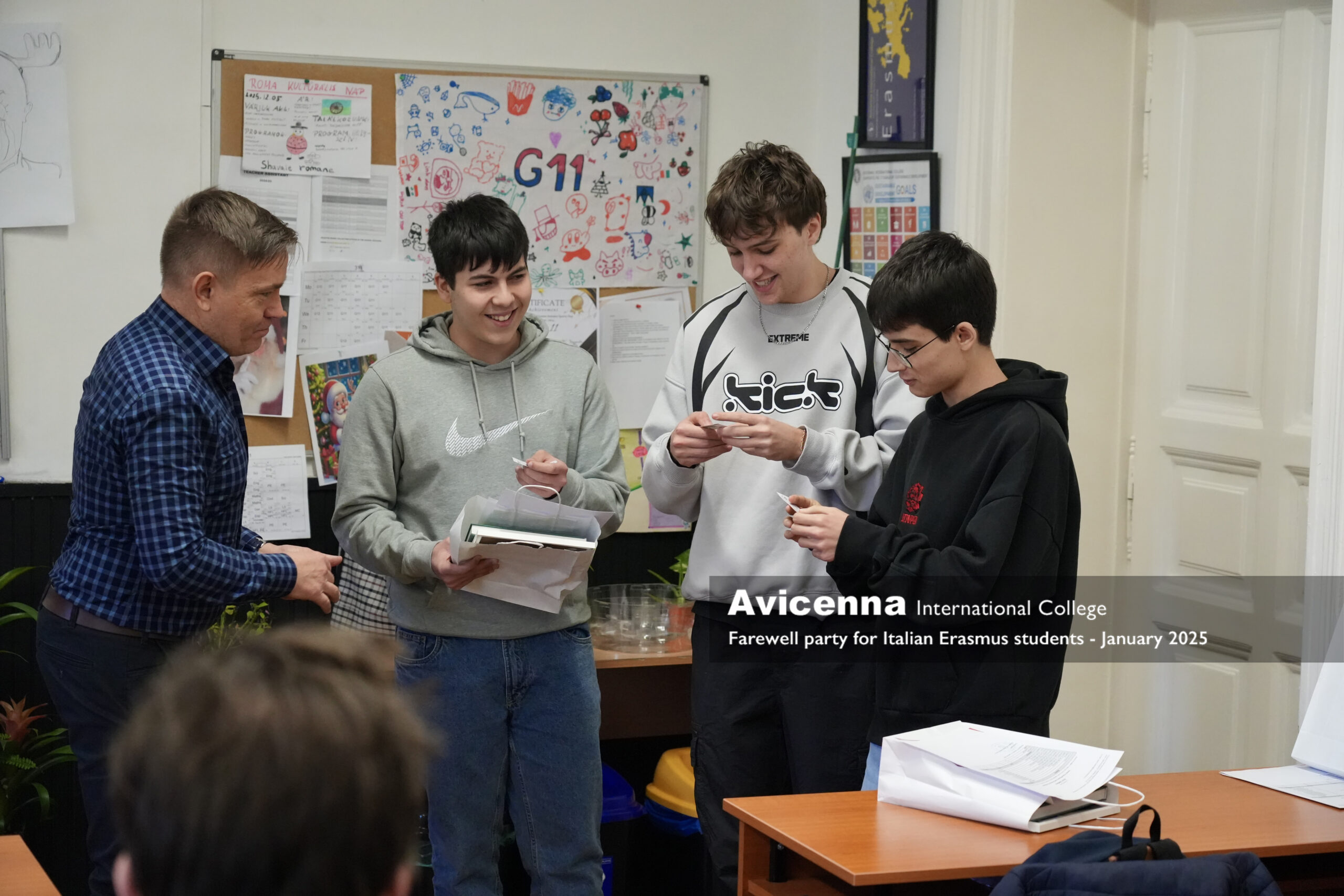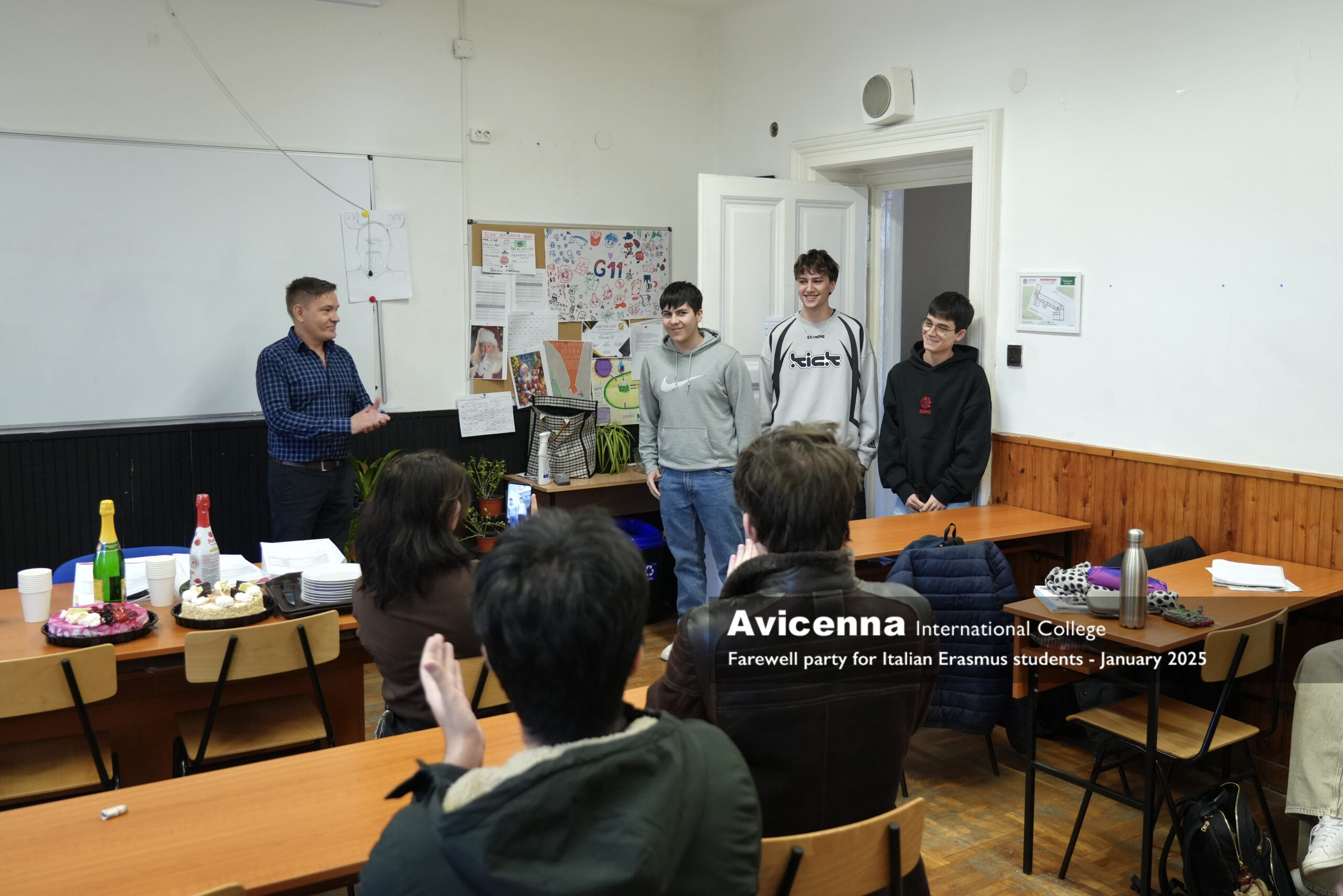 He was joined by Riccardo Belardi and Stefano Vinci from Nocera Umbra ( Umbria) for a month in January who also took a very active and memorable part in our life at Avicenna. We miss all three of them very much and will be happy to welcome them back even as visitors, already part of our alumni. On 29 january we threw a small farewell party for them where the whole grade 11 and their teachers were present to say goodbye to these 3 fantastic students, our new friends. Next week we will have another 6 Italian Erasmus students and 2 Czech Erasmus students as well for another month.
