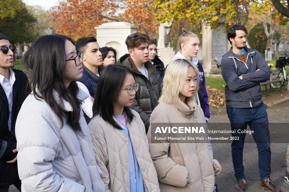 The visit was a free guided tour provided by the professionals of the Nemzeti Sírkert (“national graveyard”). In this graveyard are to be found the most renowned and most-well known Hungarians buried since the mid-19th century. Wandering around the graves and memorials, one can get an insight into the stories and dramas of Hungary’s past 170 years. Since Avicenna hosts majorly international students, it was an excellent opportunity not only to enhance their knowledge outside the classroom, but also to help them contextualize Hungary’s historical heritage.