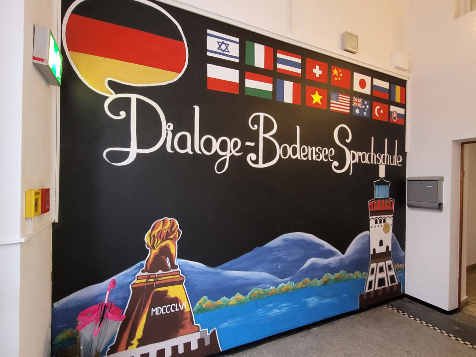 At our partner school, the Dialoge Bodensee Sprachschule, our students attended German language classes every morning divided in three different groups ( A1, A2, B2), from 9 am to 12.30 pm. The school is very well equipped with the latest IT technology spaced out in every classroom. The rooms are spacious and bright, having a maximum capacity of 20 students each. In the middle of the building, there is a large lobby area where our students could mingle with students from other countries. It opens into an equally large terrace which gives a spectacular view to the nearby lake Boden (Bodensee).
